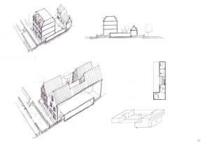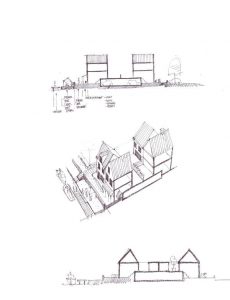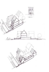 ‘Het plan biedt heel veel mooie aanknopingspunten. Op basis daarvan zijn wij volop aan het schetsen.’ Aan het woord is Bas Liesker, architect bij Heren5. Zij ontwerpen een deel van de toekomstige woningen. Bas vervolgt: ‘We schetsen en creëren verschillende soorten huizen, zodat het goed aansluit op de vraag. Die schetsen leiden ook tot bijzondere objecten! Denk aan een lang smal huis over bijna de hele breedte van het eiland, huizen met een patio of een achtertuin en appartementen met een eigen binnentuin.’